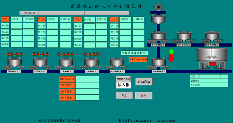本公司擁有優(yōu)良的生產(chǎn)設(shè)備和技術(shù)開發(fā)團(tuán)隊,以良好的管理模式,豐富的生產(chǎn)和設(shè)計經(jīng)驗為環(huán)保工作做出了的一定的貢獻(xiàn)。主要針對鋼鐵、耐材等行業(yè)無塵環(huán)保配料工藝的改進(jìn),設(shè)計和生產(chǎn)全自動化無塵配料設(shè)備。除塵部分分為:集中式收塵和分散式收塵。計量部分分為:增量計量和減量計量控制模式。控制部分分為:純單片機(jī)控制、單片機(jī)加PLC控制、純PLC控制。