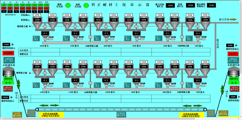 主要針對鋼鐵、耐材等行業(yè)無塵環(huán)保配料工藝的改進(jìn),設(shè)計和生產(chǎn)全自動化無塵配料設(shè)備。除塵部分分為:集中式收塵和分散式收塵。計量部分分為:增量計量和減量計量控制模式。控制部分分為:純單片機(jī)控制、單片機(jī)加PLC控制、純PLC控制。